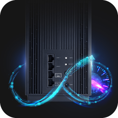 Der ZenWiFi Pro ET12 verfügt sowohl über einen 2,5G-LAN-Anschluss als auch über einen 2,5G-WAN-Anschluss, sodass Sie von einem kompatiblen ISP bis hin zu Ihren kompatiblen kabelgebundenen Geräten die volle Geschwindigkeit von 2,5 Gbit/s genießen können.