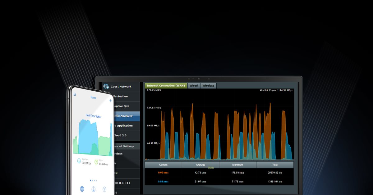 ASUS RangeBoost Plus ist die neueste und leistungsstärkste Version der bekannten RangeBoost-Technologie und verbessert die Abdeckung für alle Ihre WLAN-Geräte, einschließlich älterer Geräte. Mit einem Broadcom WiFi-Chipsatz der nächsten Generation und einer 2,0 GHz 64-Bit-Quad-Core-CPU nutzt RangeBoost Plus mehrere exklusive ASUS-Technologien, um die Reichweite und Abdeckung des WiFi-Signals um bis zu 38 %* zu verbessern.