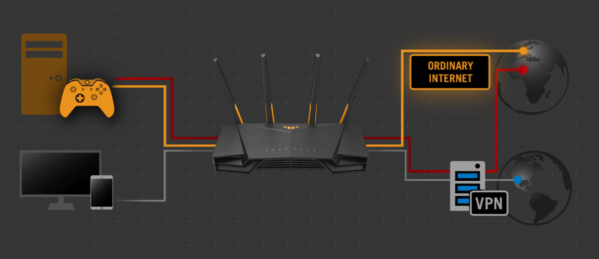 Mit VPN Fusion kannst du sowohl ein VPN als auch eine normale Internetverbindung nutzen - gleichzeitig! Selbst wenn andere Netzwerknutzer ein VPN verwenden müssen, kannst du also immer noch maximale Spielgeschwindigkeiten genießen. Ohne VPN Fusion Mit VPN Fusion
