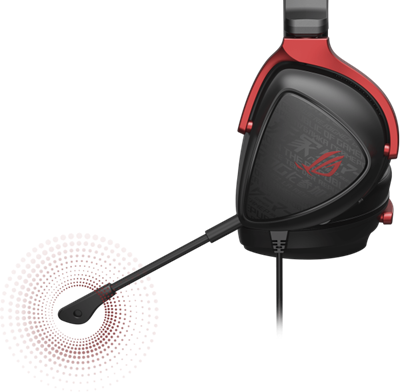 ROG Delta S Core mit Fokus auf der rechten Hörmuschel verfügt über ein Teamspeak- und Dicord-zertifiziertes Boom-Mikrofon