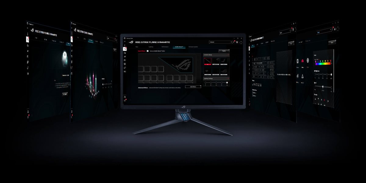 Armoury Crate vereint die System- und Beleuchtungssteuerung. Erstelle, definiere und passe Szenarioprofile, Zuordnungsschlüssel und Aufzeichnungsmakros ganz einfach an. Für die ROG Strix Flare II Animate kannst du in der Armoury Crate auch benutzerdefinierte Bilder und Animationen, Audiovisualisierungen oder die Überwachung des Systemstatus einstellen.
