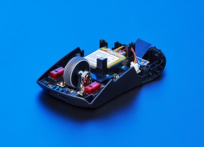 Ein einzigartiges Design mit keinem Spalt zwischen der Maustaste und dem Schalter, um eine sofortige Betätigung zu gewährleisten.