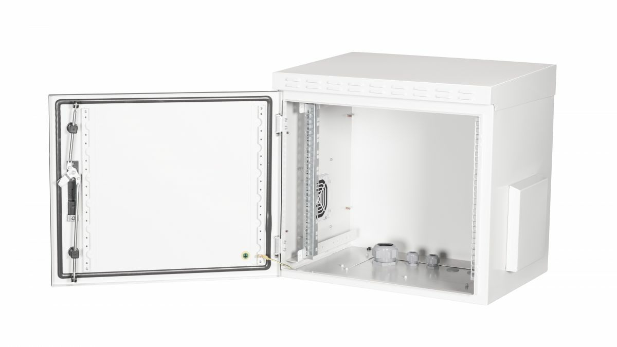Die Schrankserie "Safe Outdoor" repräsentiert 483 mm (19") IP55 Wandschränke für den Außenbereich, die für den industriellen Einsatz konzipiert wurden. Sie entsprechen der Schutzart IP55 nach EN 60529 und bieten Schutz gegen das Eindringen von Wasser und Schmutz. Für erhöhte Sicherheit sorgt ein 3-Punkt-Verriegelungssystem, das durch einen abschließbaren Schwenkhebelgriff und isolierte Kabeleinführungen ergänzt wird. Die Schränke verfügen außerdem über integrierte Lüftungsschlitze für die Frischluftzirkulation und bieten Schutz gegen Wasser und Staub gemäß IP54. Diese Schränke sind ideal für Standorte, die Umwelteinflüssen wie Regen, Staub, Graupel, Schnee und Spritzwasser ausgesetzt sind. Für mehr Flexibilität können diese Schränke mit einem Sockel kombiniert werden, um sie freistehend aufzustellen. Bei Verwendung des Sockels können die rückseitigen Montageöffnungen mit Stopfen aus dem Schranksockel verschlossen werden.