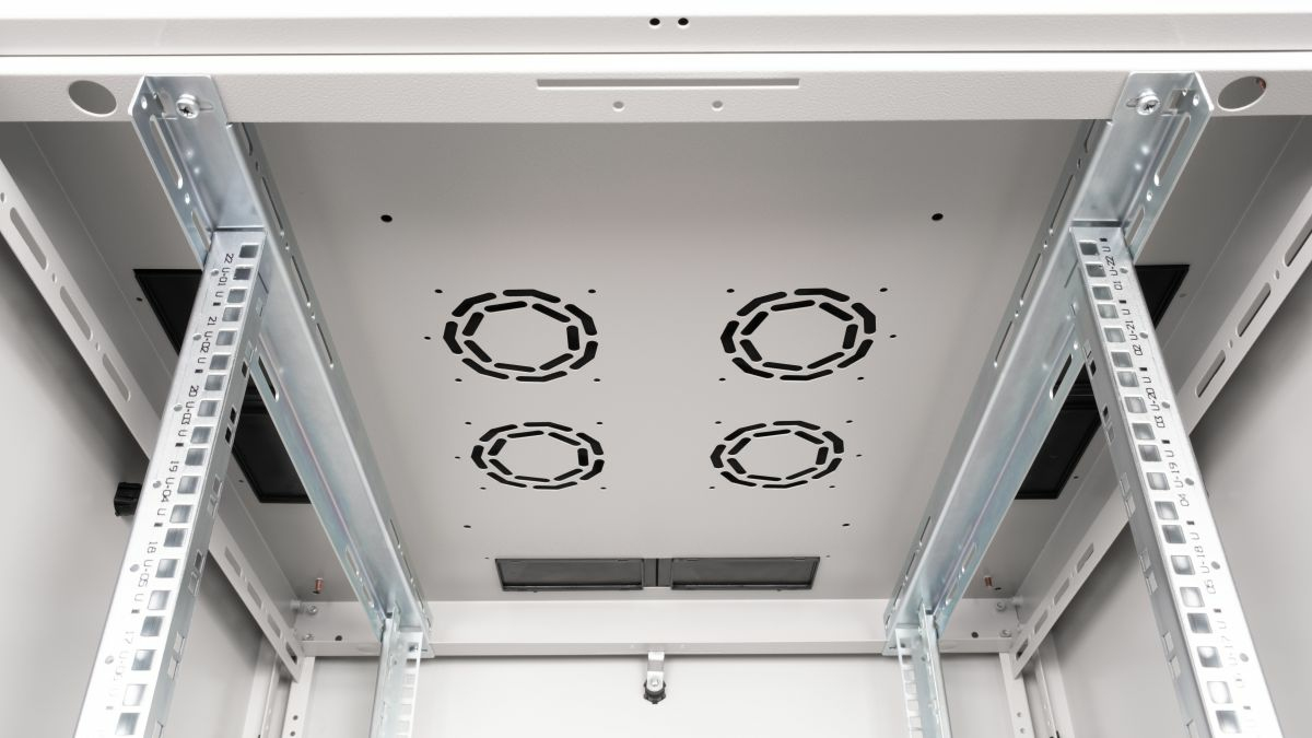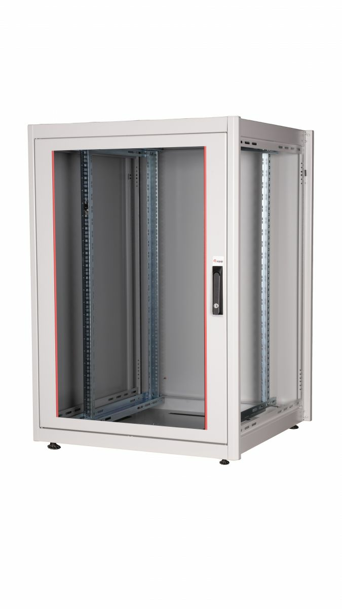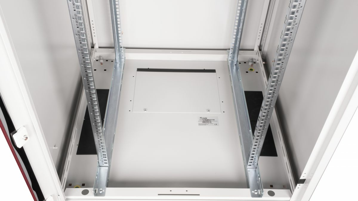 Die Schränke der Basic Flex Line wurden für die effiziente und benutzerfreundliche Installation von aktiven und passiven Netzwerkkomponenten entwickelt, wobei der Schwerpunkt auf einem rationellen Kabelmanagement liegt. Hergestellt aus bis zu 1,5 mm starkem Stahlblech, garantiert jeder Schrank eine hervorragende Stabilität durch eine einzigartige, die einen robusten Stahlrahmen bildet. Sie sind pulverbeschichtet in Grau (RAL 7035) oder Schwarz (RAL 9005)erhältlich. Für schwer zugängliche Aufstellorte ist der Schrank zerlegbar ausgeführt. Die Türen sind leicht abnehmbar und die Türanschläge können zwischen Rechts- und Linksanschlag umgeschaltet werden. Außerdem ist das Dach für den Einbau einer Lüftungseinheit vorbereitet. In jedem Schrank befinden sich zwei Sätze (4 Stück) 483-mm-Profilschienen (19"). Diese verzinkten und mit beidseitig ablesbaren Höheneinheiten versehenen Schienen sind in der Tiefe verstellbar. Um den Einbau von großvolumigen Geräten zu erleichtern, werden sie mit zusätzlichen Tiefenstreben kombiniert. Das Kabelmanagement ist ein zentraler Bestandteil des Designs. Der Schrankboden verfügt über eine ausgestanzte Kabeleinführung, die mit einer Metallplatte abgeschirmt ist. Für die breiteren 800 mm Schränke gibt es zusätzlich ausgestanzte Kabeleinführungen, die beidseitig mit Kunststoff abgedeckt sind. Diese Kabeleinführungen befinden sich auch auf dem Dach, wobei bei den 600 mm breiten Schränken nur eine und bei den 800 mm breiten Schränken drei Kabeleinführungen gibt. Um den unterschiedlichen betrieblichen Anforderungen gerecht zu werden, ist ein umfangreiches Zubehörprogramm mit Kabelführungswerkzeugen und Fachböden erhältlich.