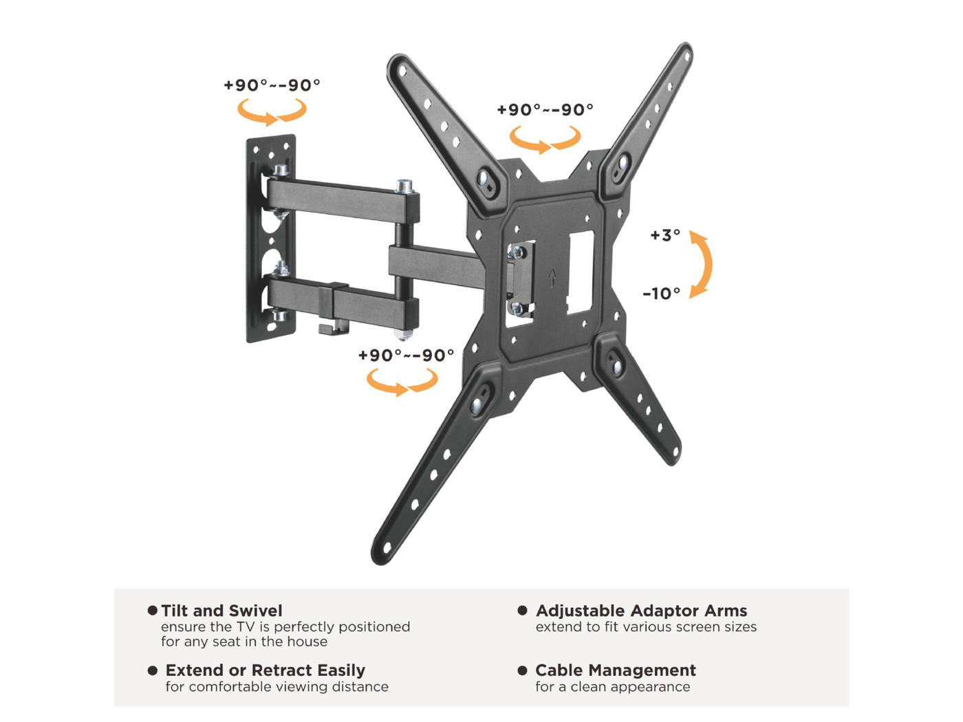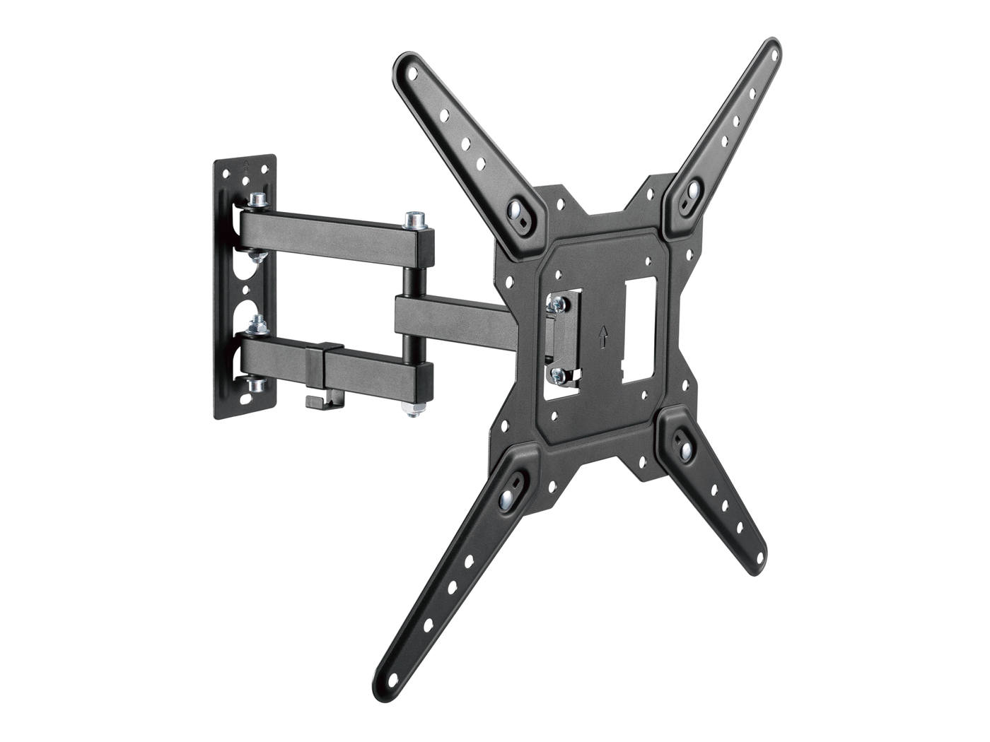 Equip 23"-55" Vollbewegliche TV-Wandhalterung. Diese vielseitige Halterung ist für Fernseher von 23 bis 55 Zoll konzipiert und bietet eine flexible Lösung für Ihre Betrachtungsbedürfnisse. Die vollbeweglichen Funktionen ermöglichen es Ihnen, Ihren Fernseher zu schwenken, zu neigen und auszufahren, um den perfekten Winkel zu gewährleisten und Blendungen zu reduzieren, sodass Sie von jedem Platz im Raum optimalen Genuss haben.