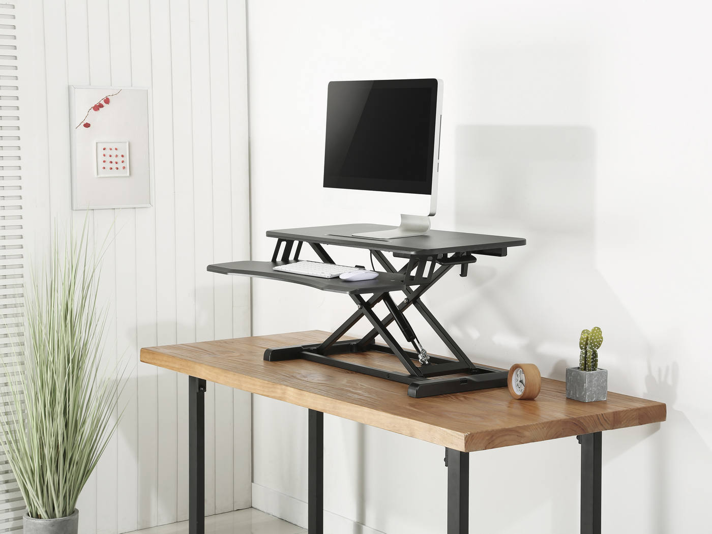 Die equip® ERGO ermöglicht es Ihnen, Ihren Schreibtisch schnell und einfach in eine ergonomische Steharbeitsstation zu verwandeln. Durch einfaches Verstellen der Höhe zwischen 10 und 50 cm mit dem Squeeze-Griff und der Gasfeder erfolgt dies reibungslos und mühelos. Dank des integrierten Schlitzhalters und der unteren Tastatur-/Maus-Tischplatte gewinnen Sie mehr Platz für Geräte und Büroartikel. Die korrekte Sitz-/Stehhaltung wird ermöglicht, wodurch Ihre Halswirbelsäule entlastet wird.