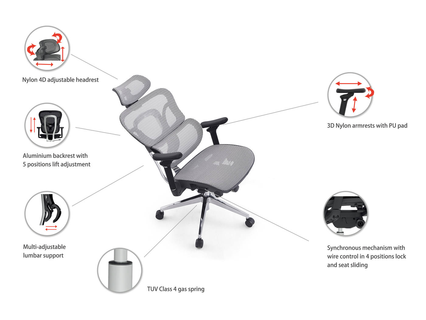 - Raffinierter Synchronmechanismus: Ausgestattet mit einem hochmodernen Synchronmechanismus mit Drahtsteuerung, der eine 4-Positionen-Arretierung und eine Sitzschiebefunktion ermöglicht und dynamische Sitzhaltungen fördert.