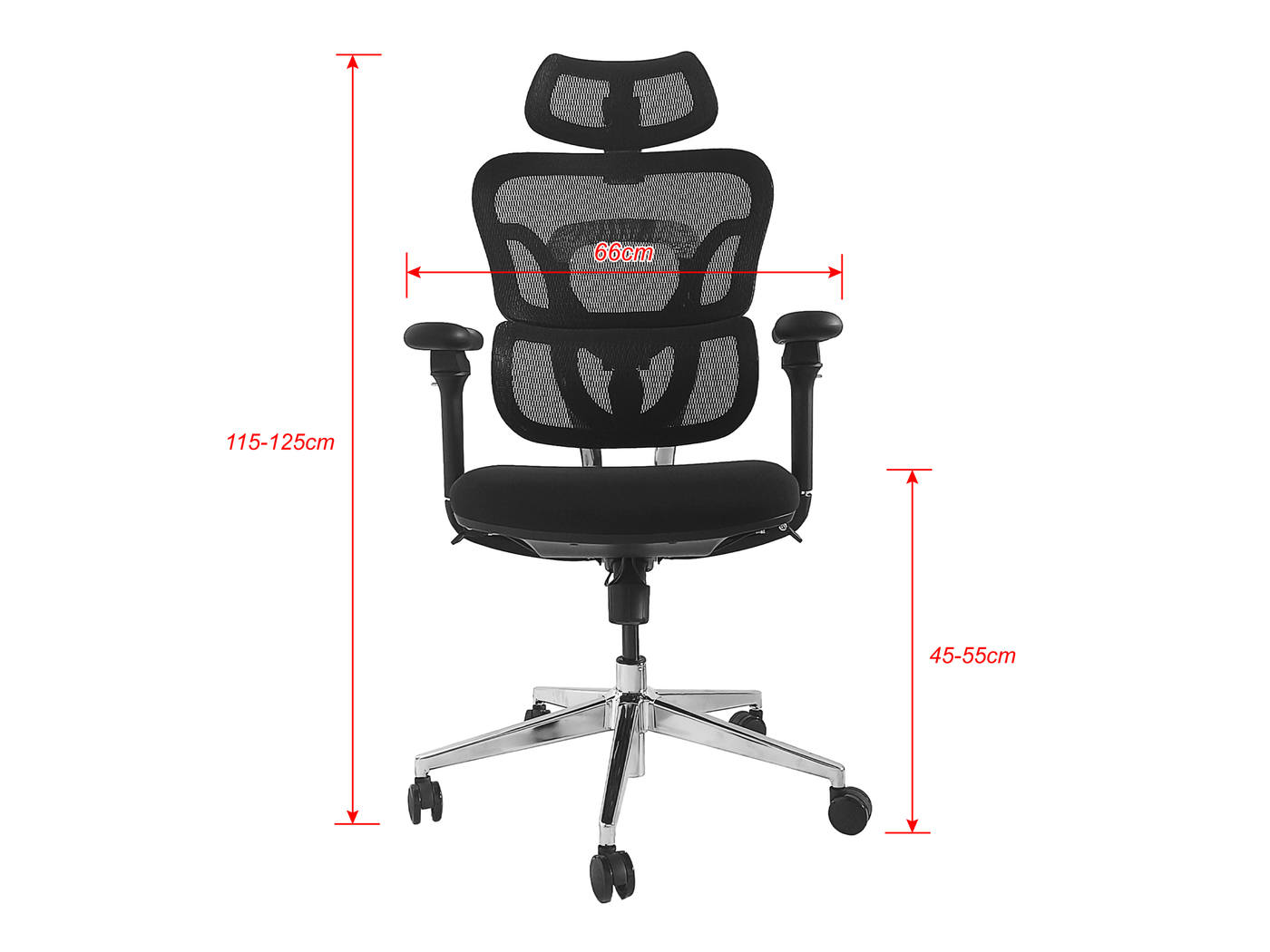 Der ergonomische Premium-Bürostuhl mit Kopfstütze und Armlehnen ist für überlegenen Komfort und Unterstützung konzipiert und ideal für diejenigen, die lange Stunden am Schreibtisch arbeiten. Seine 4D-Kopfstütze ist in mehreren Richtungen verstellbar, sodass Benutzer ihre Nackenunterstützung für eine optimale Haltung individuell anpassen können. Der Stuhl verfügt über eine Nylon-Mesh-Polsterung, die Atmungsaktivität fördert und den Benutzer den ganzen Tag über kühl und komfortabel hält.