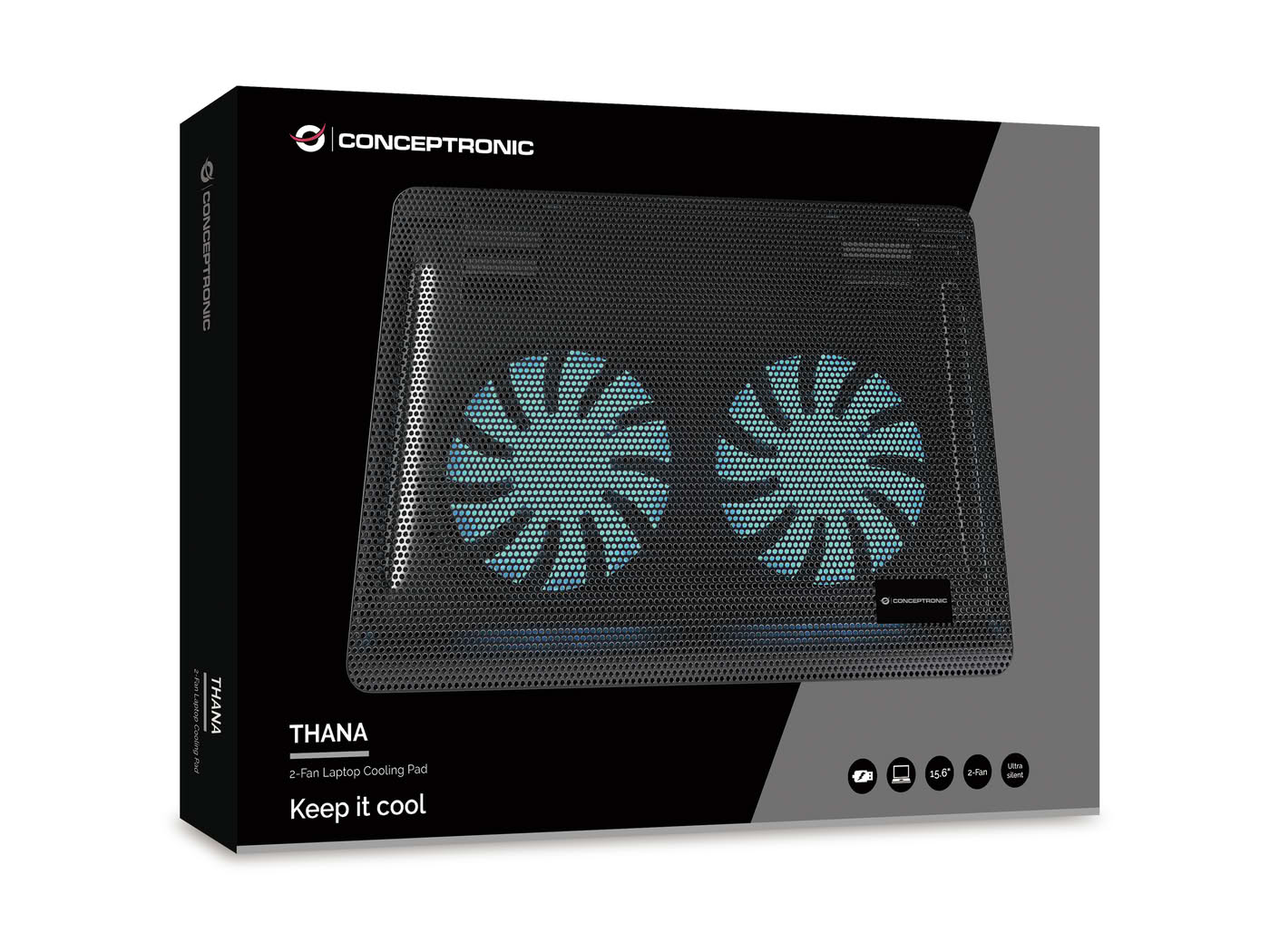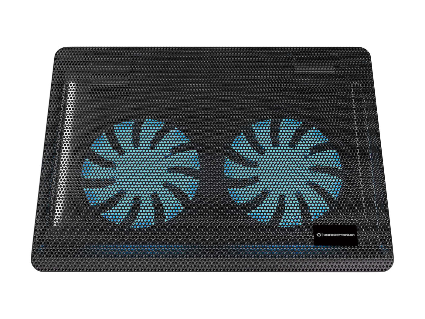 Das Laptop-Kühlpad von Conceptronic sorgt für einen sicheren und komfortablen Betrieb Ihres tragbaren Geräts mit zwei leisen, aber leistungsstarken Lüftern. Das Kühlpad wird über USB betrieben, sodass es überall ohne Steckdose verwendet werden kann. Sein cleveres Design beinhaltet eine Rille für das USB-Kabel, um Verwicklungen und Schäden zu vermeiden. Eine praktische und vielseitige Ergänzung für mobiles Arbeiten und Spielen.