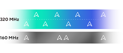 Bis zu mit 320 MHz & 4K-QAM *Vergleich zu Wi-Fi 6E
