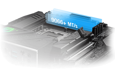 ROG hat eine lange Tradition in der Bereitstellung von erstklassiger Speicherleistung und DDR5 ist keine Ausnahme. Dank der verbesserten Signalführung können Enthusiasten-Kits auf dem Strix B860-F weit über die 9 GT/s-Grenze hinausgehen, und noch höhere Geschwindigkeiten sind in Sicht. Für erfahrene Nutzerinnen und Nutzer bietet das UEFI eine breite Palette an Optionen, um die Leistung zu optimieren und an ihre Grenzen zu bringen.