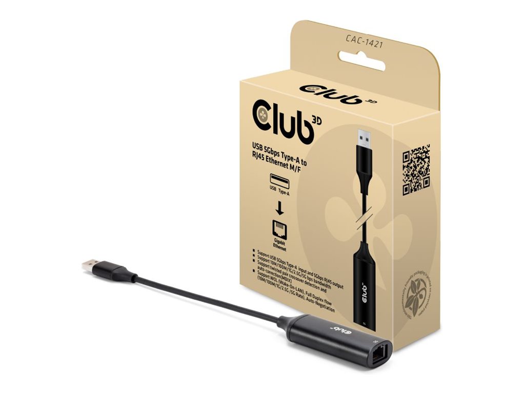 Club3D CAC-1421 – USB-A auf RJ45 Adapter mit 5 Gbps Multi-Gig-Leistung
