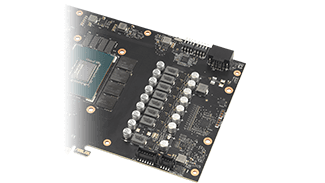 Die großen Belüftungsöffnungen in der Backplate verbessern die Wärmeableitung erheblich und sorgen dafür, dass die GPU bei intensiven Aufgaben kühler bleibt. Dieser zusätzliche Luftstrom sorgt für optimale Temperaturen und erhöht die Leistung, Langlebigkeit und Stabilität, indem er Überhitzung und thermisches Throttling verhindert. Eine kürzere Platine mit optimierten Bauteil- und Leiterbahnlayouts reduziert die Verlustleistung und ermöglicht es, dass die Wärme durch eine große Lüftungsöffnung auf der Rückseite entweichen kann.