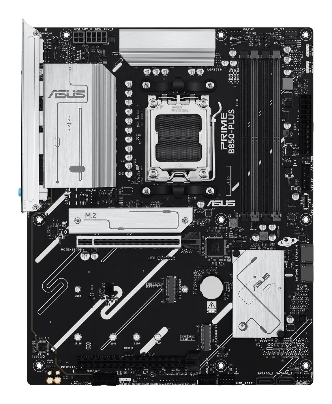 Kühler per Design Das PRIME B850-PLUS-CSM Mainboard ist mit mehreren Onboard-Kühlkörpern und einer Reihe von Hybridlüfter-Headern ausgestattet, um sicherzustellen, dass dein System auch bei hoher Belastung kühl und stabil bleibt.
