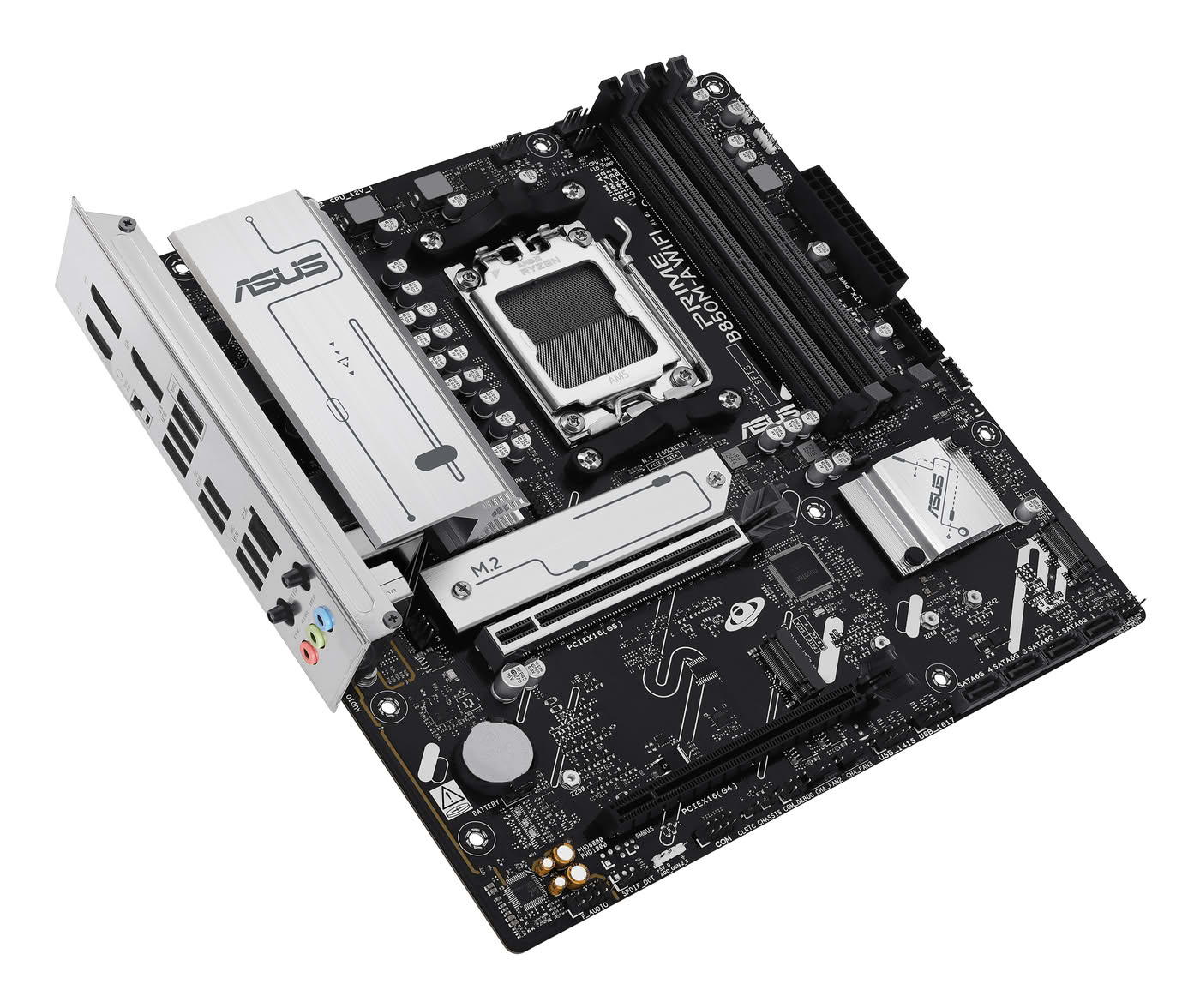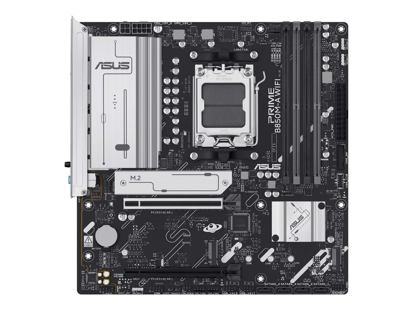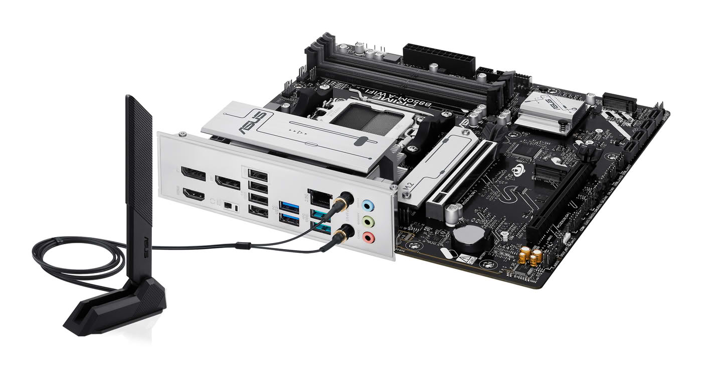 ASUS PRIME B850M-A WIFI Gaming Mainboard Sockel AMD AM5 (microATX, DDR5, PCIe 5.0, 3x M.2 Slots, Wi-Fi 6E, Realtek 2.5Gb Ethernet, DisplayPort, HDMI, BIOS FlashBack, Aura Sync)