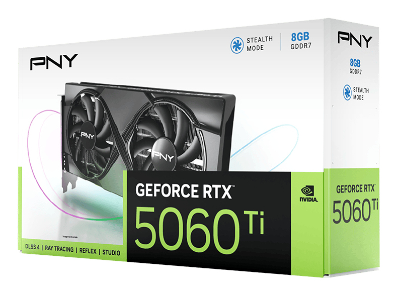 PNY GeForce RTX 5060 Ti. Grafikprozessorenfamilie: NVIDIA, GPU: GeForce RTX 5060 Ti, Prozessortaktfrequenz: 2407 MHz. Separater Grafik-Adapterspeicher: 8 GB, Grafikkartenspeichertyp: GDDR7, Breite der Speicherschnittstelle: 128 Bit. Maximale Auflösung: 7680 x 4320 Pixel. DirectX-Version: 12 Ultimate, OpenGL-Version: 4.6. Schnittstelle: PCI Express x8 5.0. Kühlung: Aktiv, Anzahl Lüfter: 2 Lüfter