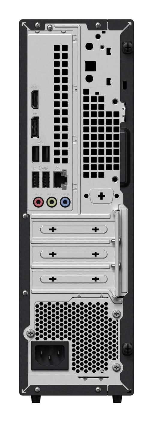 Das Gehäuse im kompakten SFF-/Mini-Format spart Platz und integriert sich mühelos in moderne Arbeitsumgebungen. Mehrere Anschlüsse — darunter HDMI, DisplayPort, USB-C, USB-A und Ethernet — erlauben vielseitige Vernetzung und Peripherie-Integration.