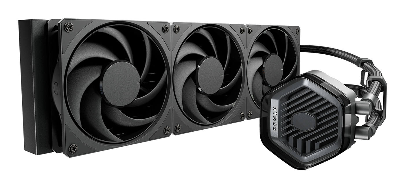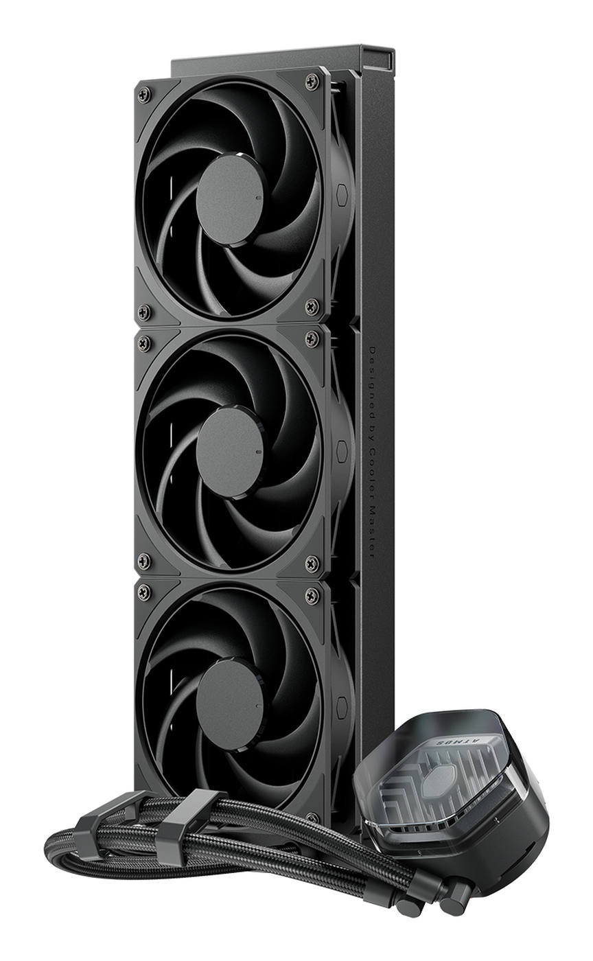 Cooler Master MasterLiquid ATMOS Stealth Series. Typ: Flüssigkeitskühlung, Lüfterdurchmesser: 12 cm, Rotationsgeschwindigkeit (min.): 0 RPM, Rotationsgeschwindigkeit (max.): 2400 RPM, Luftstrom: 127,6 m³/h, Maximum Luftdruck: 3,63 mmH2O, Lagertyp: Loop Dynamic Bearing (LDB) (schleifendynamisches Lager). Produktfarbe: Schwarz