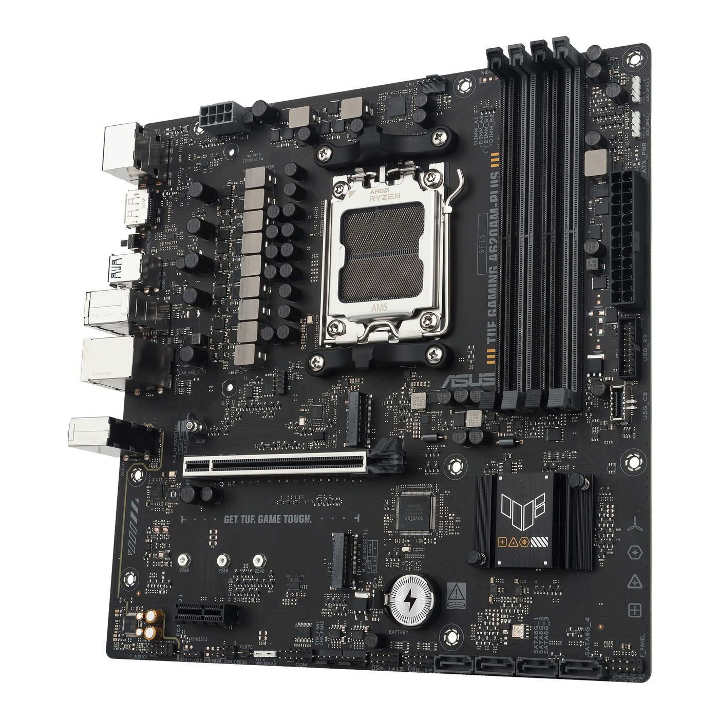 AMD A620A Micro-ATX-Mainboard (8+2+1-Phasen-Digitalstromversorgung, DDR5, PCIe 4.0-fähig, zwei M.2-Steckplätze, Wi-Fi 6, Realtek 2,5-Gb-Ethernet, zwei DisplayPorts, HDMI™, USB 10 Gbit/s Typ A-Anschluss auf der Rückseite und USB 10 Gbit/s Typ C®-Anschluss auf der Vorderseite, BIOS FlashBack™, M.2 Q-Latch, Aura Sync)