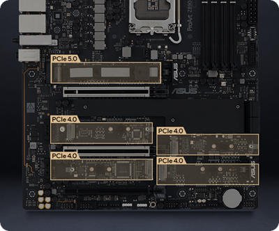 Das ProArt Z890-CREATOR WIFI bietet PCIe® 5.0-Unterstützung, um den schnellsten SSDs und Grafikkarten ungehinderte Bandbreite zur Verfügung zu stellen.